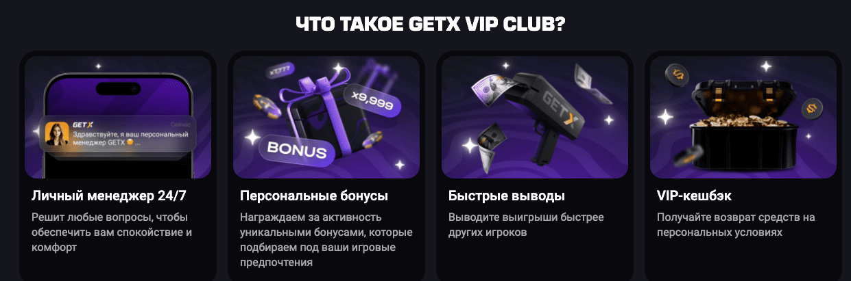 Казино Get X успешно сочетает в себе огромный выбор лицензионных игр, щедрую бонусную политику, удобство мобильной игры и, что самое важное, надежность и безопасность. Благодаря рабочим зеркалам, доступ к платформе остается стабильным, а быстрый вывод средств и круглосуточная поддержка делают игровой процесс максимально комфортным.